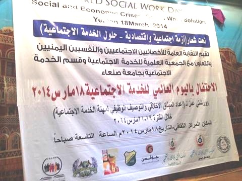 بمناسبة الاحتفال باليوم العالمي للخدمة الاجتماعية باليمن للعام ٢٠١٤ الذي يصادف تاريخ ١٨ مارس وبأجماع من رئاسة قسم الخدمة الاجتماعية بجامعة صنعاء ومن أعضاء المكتب التنفيذي للنقابة العامة للأخصائين الاجتماعيين والنفسيين وأعضاء المكتب التنفيذي للجمعية العلمية اليمنية للخدمة الاجتماعية وبالتشاور مع الاتحادين (الدولي+ الآسيوي) للاخصائين الاجتماعيين . تم اختيار المنظمة الدولية للأصلاح الجنائي كأفضل منظمة دولية ساهمت في دعم الخدمة الاجتماعية وتدريب الأخصائيين الاجتماعيين اليمنيين خلال العام ٢٠١٣م . كما تم منح كل من السيدة تغريد جبر المدير الإقليمي للمنظمة والأستاذ محمد .شبانه مدير البرامج بالمنظمة والدكتور فواز الرطروط الخبير لدي المنظمة شهادات تكريم علي دورهم في العمل الاجتماعي والإنساني في اليمن خلال العام ٢٠١٣م